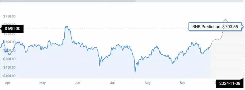 According to CoinCodex, BNB is due for a massive surge by the end of October 2024. BNB may trade at a new ATH by spiking 20%.