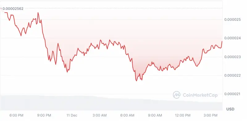 At press time, the meme coin was trading at $0.00002385 following a 6% drop over the past 24 hours. It should be noted that just two days ago, on December 9, the asset hit an all-time high of $0.00002825. Currently, PEPE trades 16% below this peak. However, throughout the past month, the asset has surged by nearly 100%.