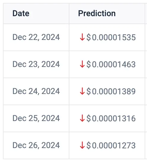The market expects to end the final year of this volatile year on a bullish note. According to data from CoinCodex, it is forecasted that Pepe Coin will trade in a range between $0.00001007 and $0.00002250 in 2024. This further sums up to an average yearly price of $0.00001542.