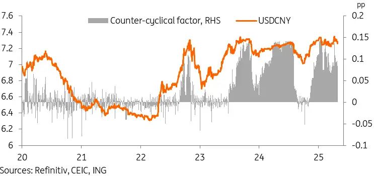 For now, ING maintains its USD/CNY forecast band of around 7.00-7.40, with some potential for a stronger yuan if tensions happen to ease somewhat. China’s successful defense against these extreme tariff pressures is essentially marking an important milestone in the global de-dollarization process, and in many ways strengthening the yuan’s position as an alternative to traditional dollar dominance in international markets.