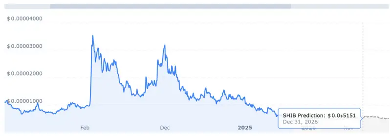 “Shiba Inu may hit $0.055161 by the end of 2026 (-12.18% compared to current rates), $0.053245 by 2030 (-44.77%), $0.00001025 by 2040 (+74.38%), and $0.00002856 by 2050 (+386.05%). All values represent end-of-year price estimates according to our models.”