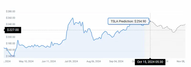 “According to our current TSLA stock forecast. The value of TSLA shares may rise by 1.93% and reach $254.90 per share by October 15, 2024. Per our technical indicators, the current sentiment is neutral, while the Fear & Greed Index is showing 39 (fear). TSLA stock recorded 18/30 (60%) green days with 6.92% price volatility over the last 30 days. Based on the Tesla stock forecast. It’s now a good time to buy TSLA stock.