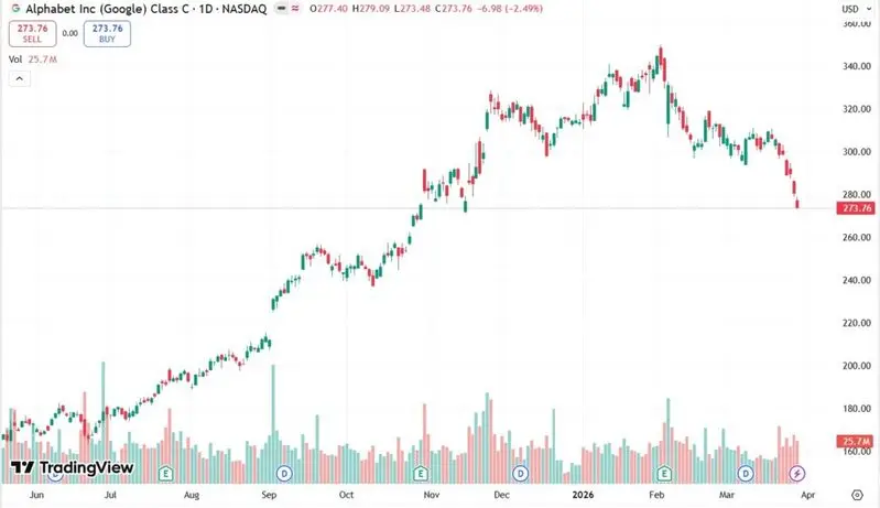 The SMA has now drawn a line in the sand and is currently in a boundary between a healthy correction and a full-blown bear market. Watcher Guru analyzes the current charts and projects a ‘mean reversion’ for Google’s Alphabet stock, as it bounces off the ongoing long-term support. This article will forecast how high or low Google stock will end April 2026.